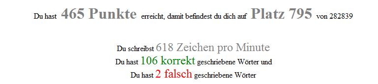 Ist ja ein ganz lustiges Programm ^^ Glaub die 600 Zeichen pro Minute sind gut schaffbar ^^ Hatte schon 570 allerdings mit 2 Fehlern. War dann schlechter ^^